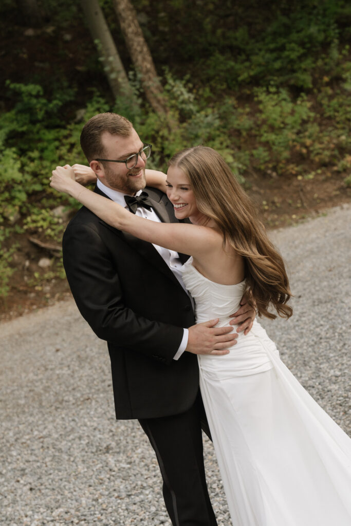 In true Colorado fashion, the weather couldn’t quite make up its mind. It sprinkled right in the middle of their vows (of course!). It didn’t ruin anything because the sun peeked through while it rained, and it honestly looked like something out of a movie. By the time we started portraits, the clouds had cleared, the air felt fresh, and everyone was just soaking in that perfect post-rain glow.